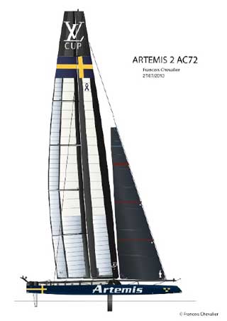 Classe de jauge AC72 – 22m de long / 14m de large / 5.9t / vitesse de 48Knts